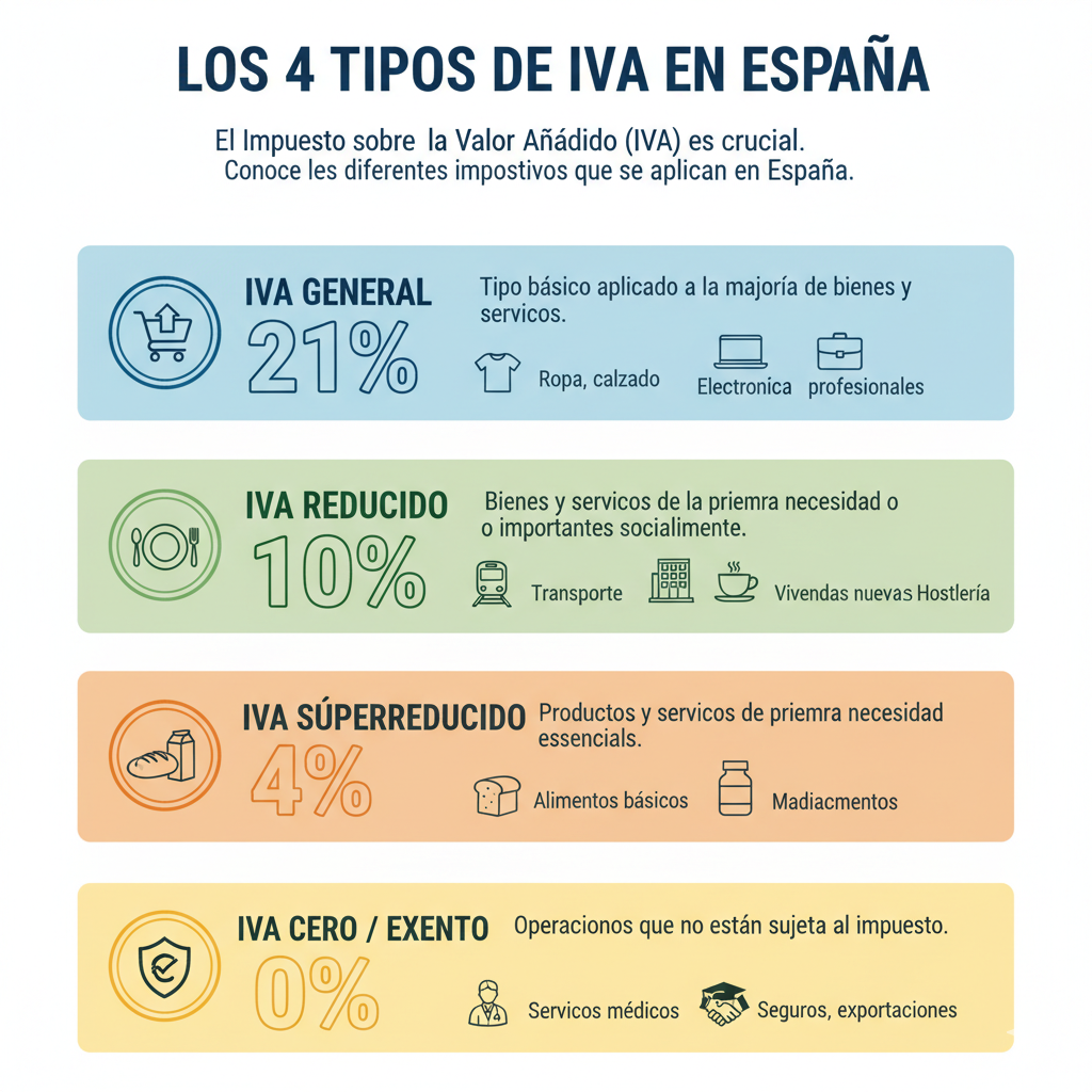 El Impuesto sobre el Valor Añadido (IVA) es el tributo indirecto más importante en España, aplicado a casi todas las compras de bienes y servicios. El sistema fiscal utiliza cuatro tipos impositivos distintos (General, Reducido, Súperreducido y Exento) para ajustar la carga fiscal según la naturaleza esencial del producto. Entender estas categorías es clave para comprender el coste final de los productos y las obligaciones fiscales.
